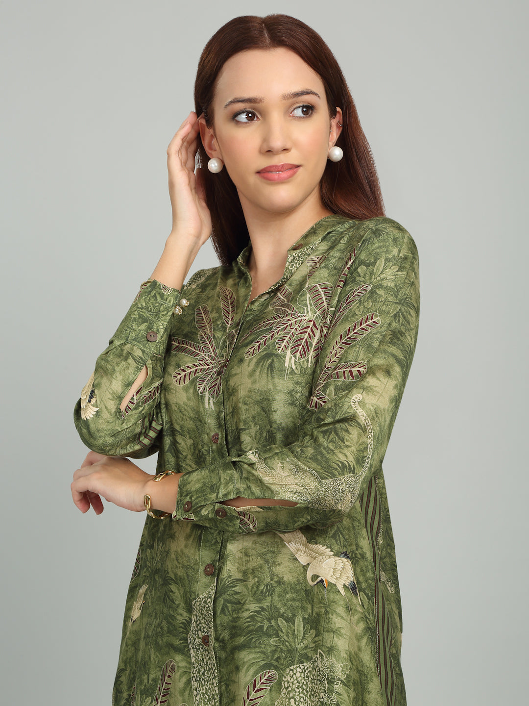 A breezy, relaxed-fit shirt with an open-front design and tailored cuffed sleeves