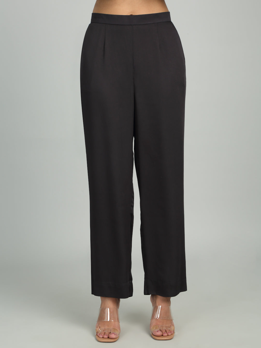 Straight Pants with an elasticated back, side pockets, and a concealed zip on the left.
