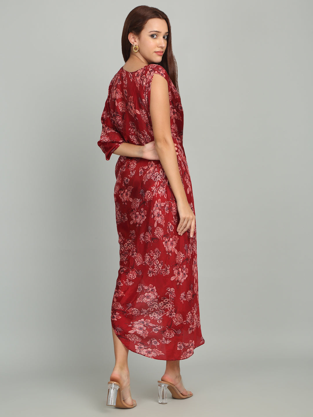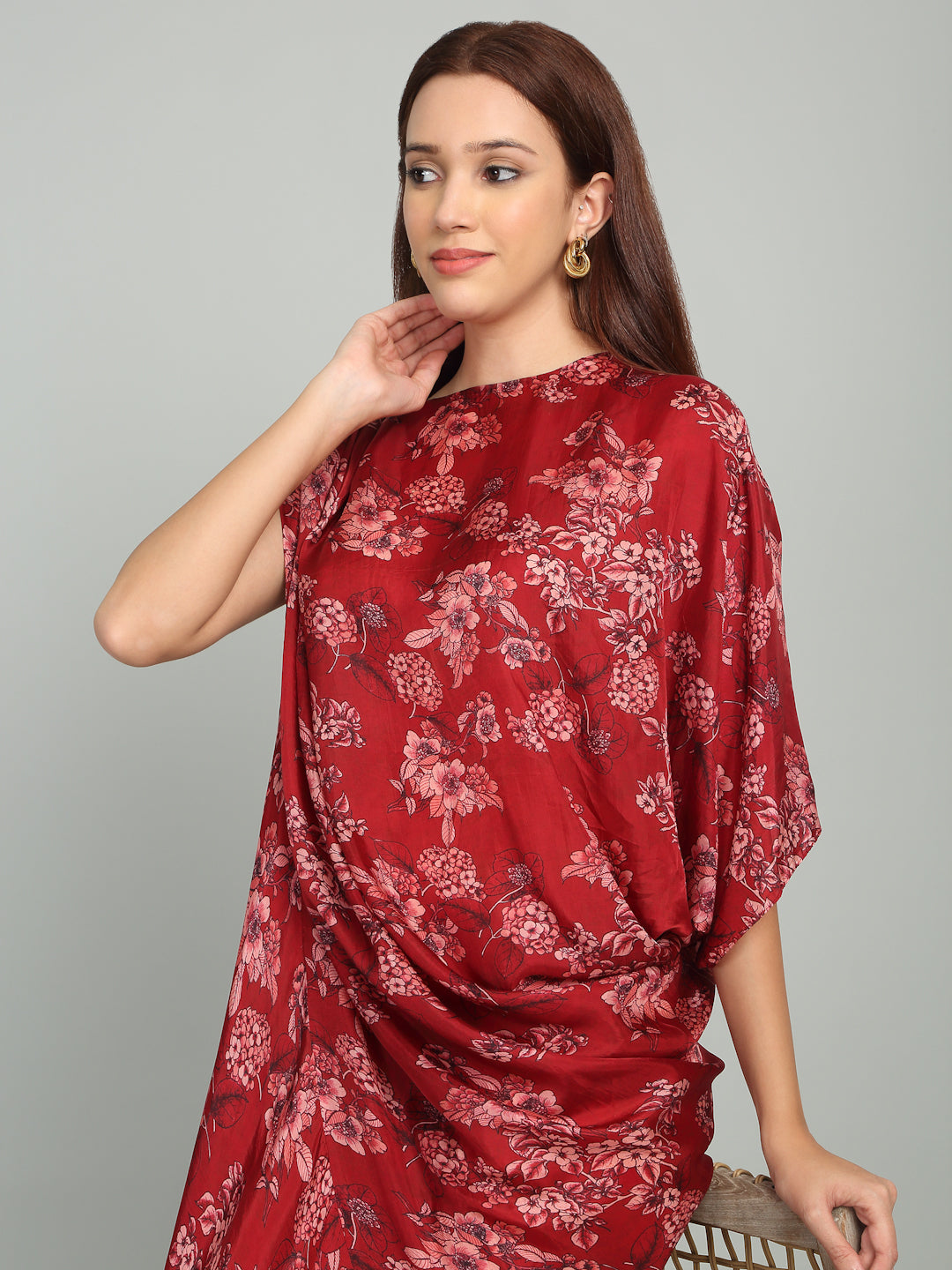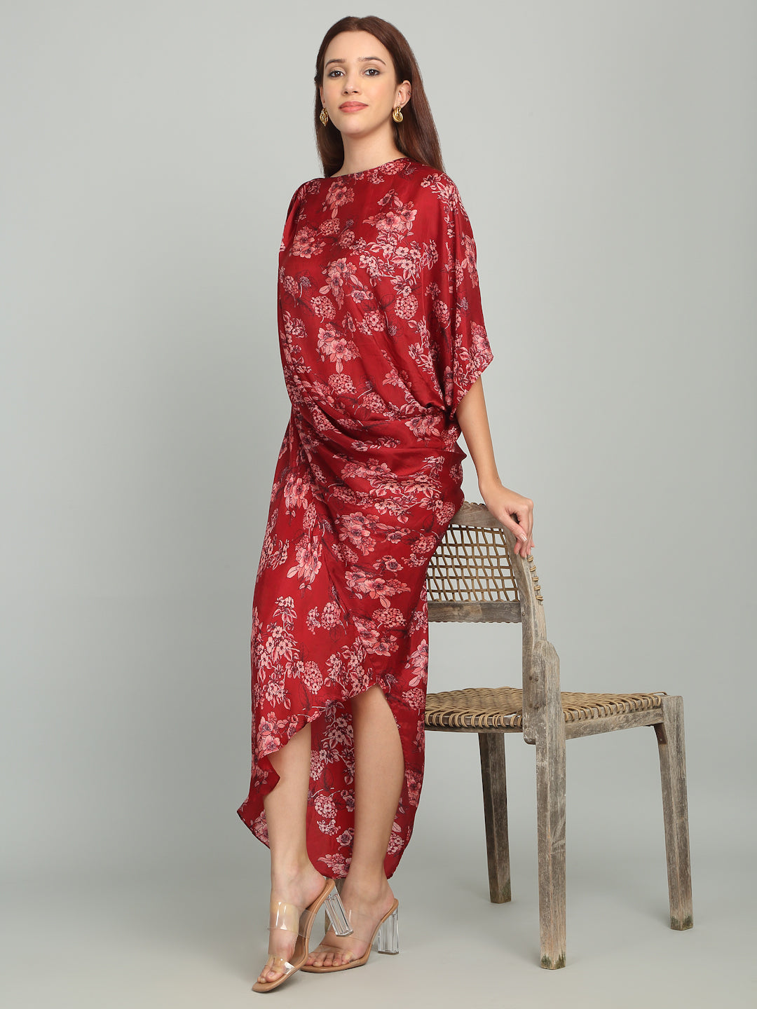 Radiate sophistication in the Soft Ruby Periwinkle dress, with an exquisite floral print for an enduring touch of elegance