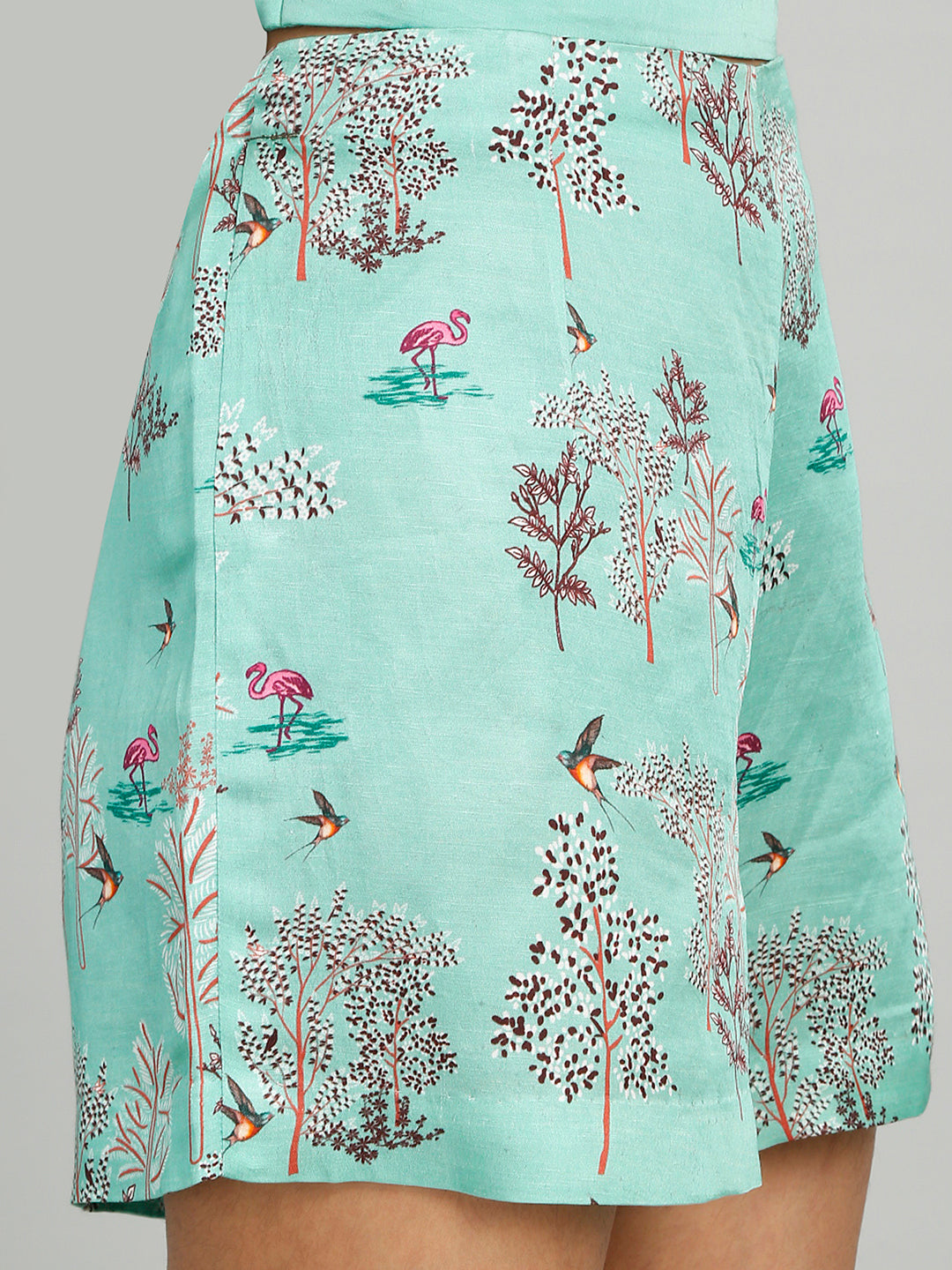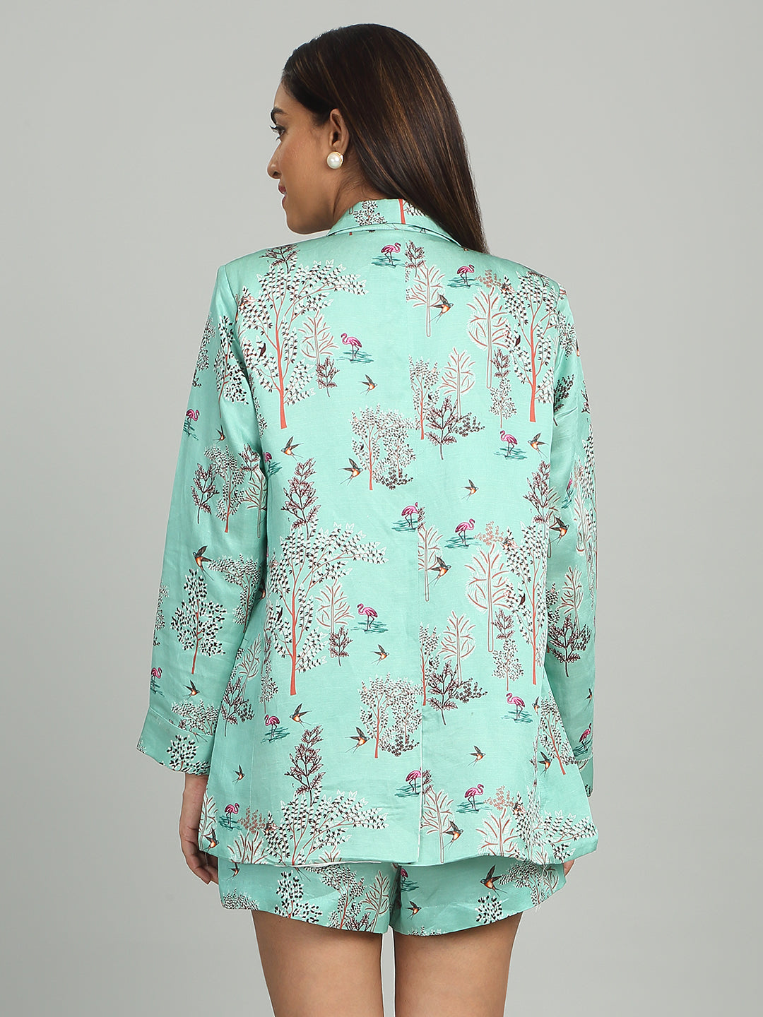 With vibrant print and casual sophistication, the Soho jacket and shorts set embodies Mumbai’s street style for a standout look