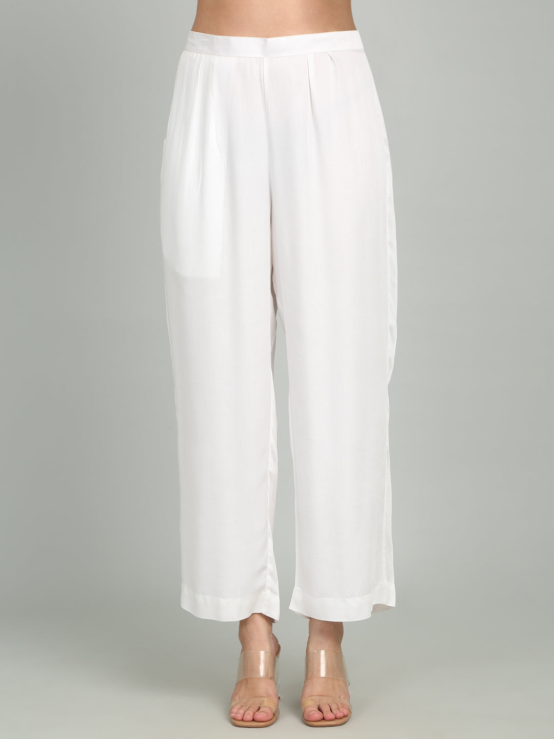 Straight Pants with an elasticated back, side pockets, and a concealed zip on the left.