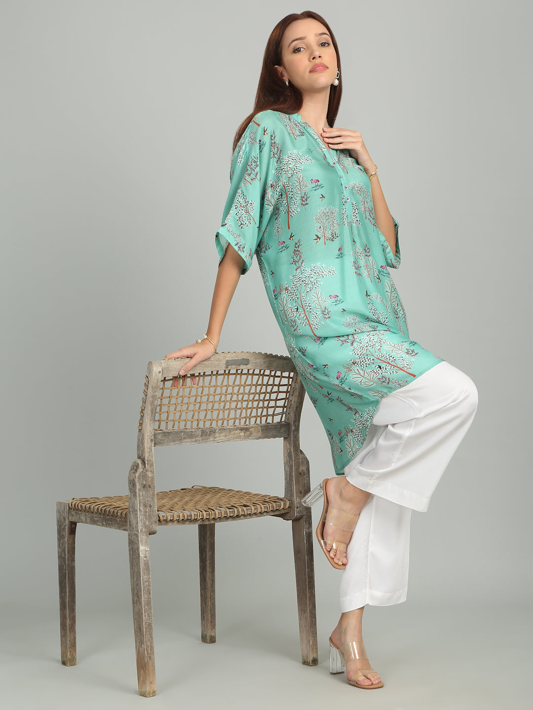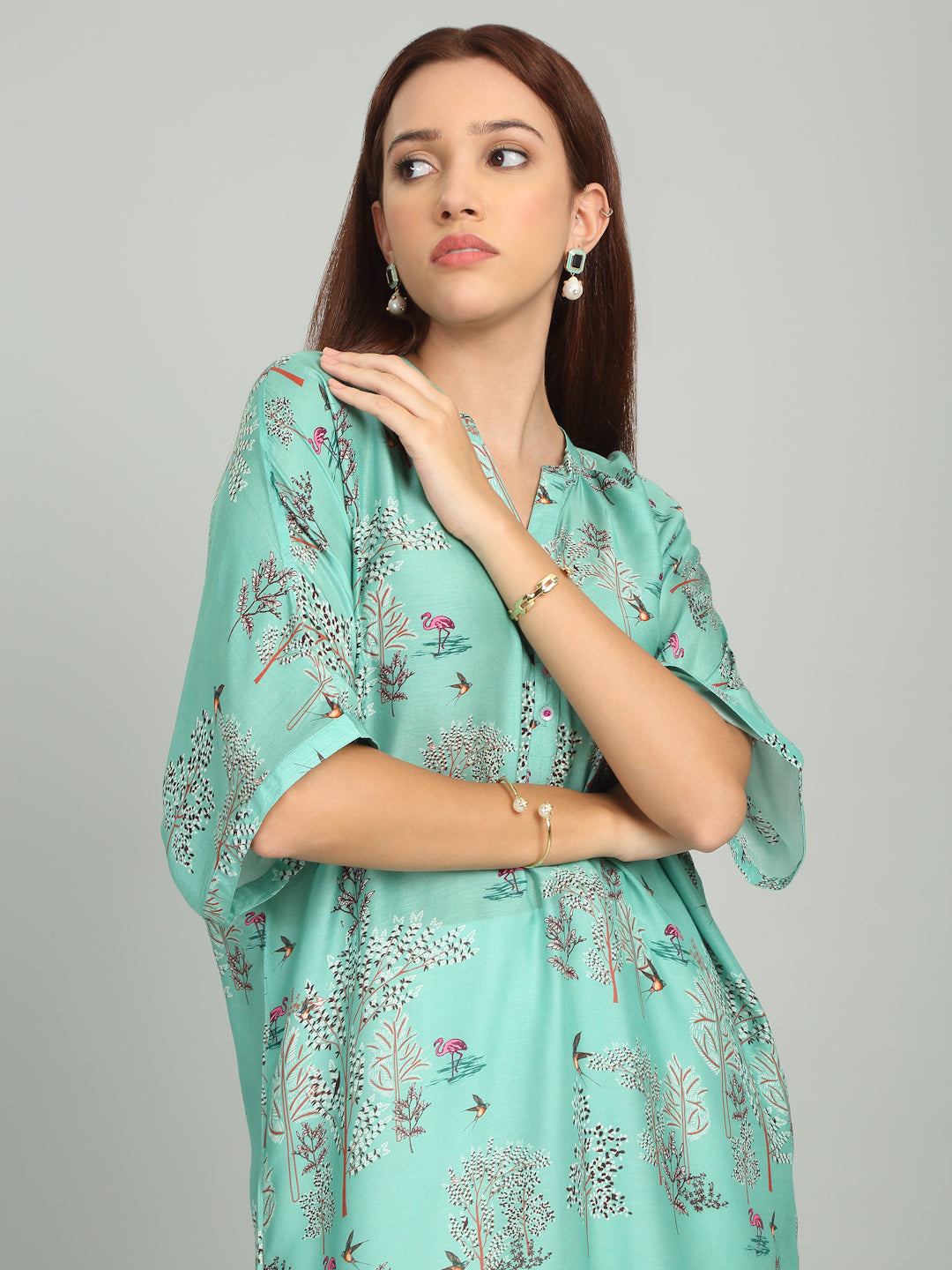 An exquisite printed Kaftan from the Mumbai Collection, inspired by the tranquil charm and elegance of Worli Sea Face