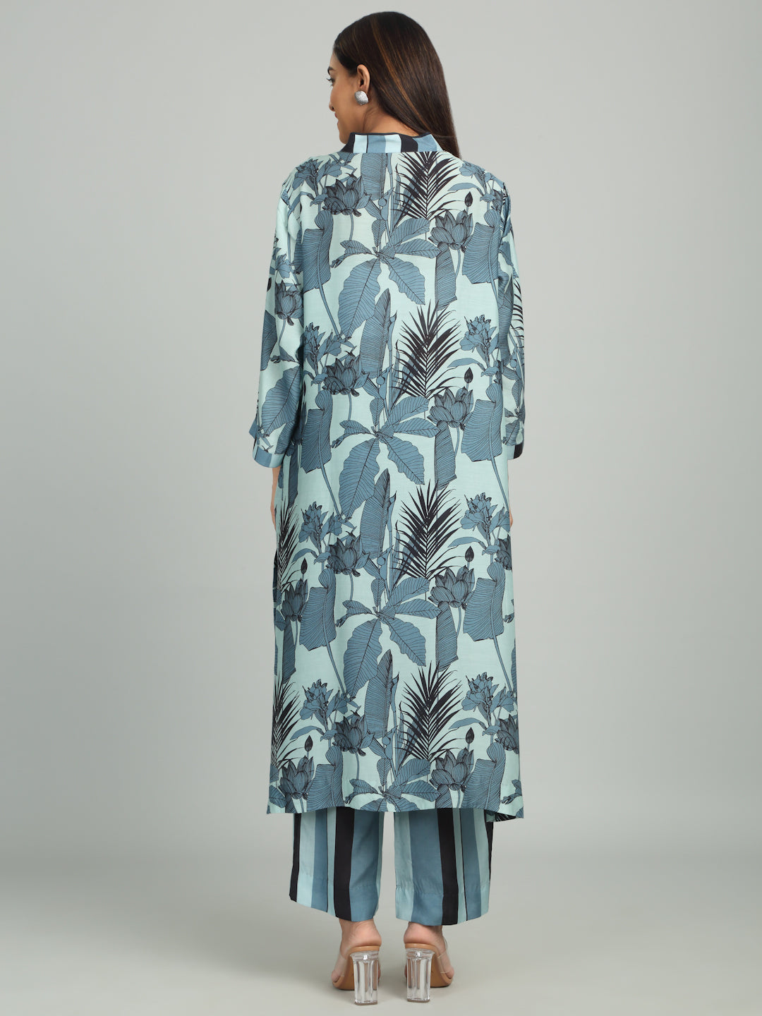Embrace tropical vibes with this kurta set, featuring a bold leafy print that adds a touch of natural elegance and freshness
